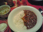 ご飯の上にカレーをかけて、ホワイトソースをかけてまたカレー(笑)