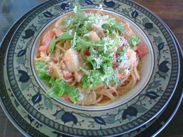 海老とホタテとトマトのクリームパスタみたいな感じ。