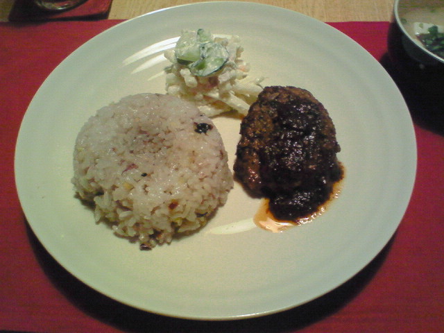 昨日の残りのハンバーグと十六穀米です(^3^)/