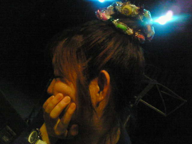 お土産のキャンディー首飾りをおだんごに巻くナツカの図(笑)