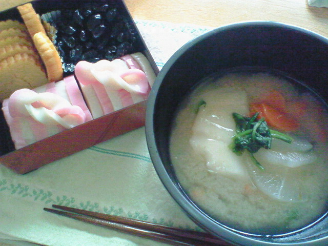 昼はミニミニおせちとお雑煮(うちは味噌味)を食べましたヾ(=^▽^=)ノ