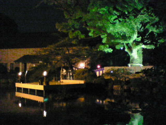 中に進むと池(お堀)があって水上にステージがあります。