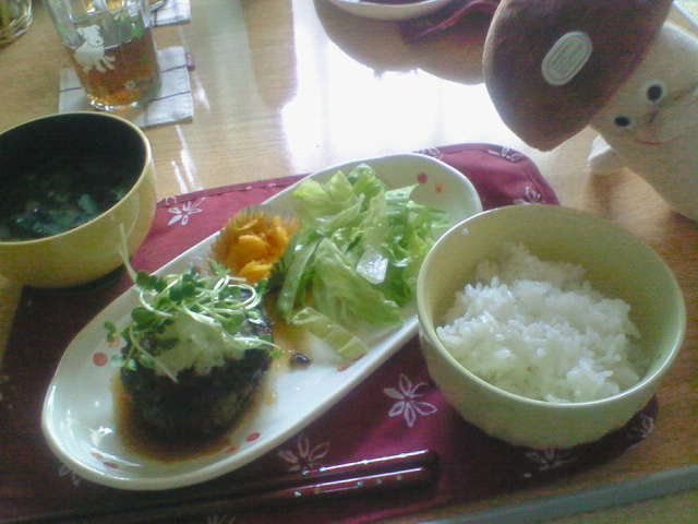 昼食は時間があったので《手ごね和風ハンバーグ(よく焼き)》を作りました。↓